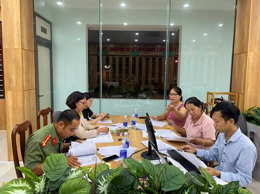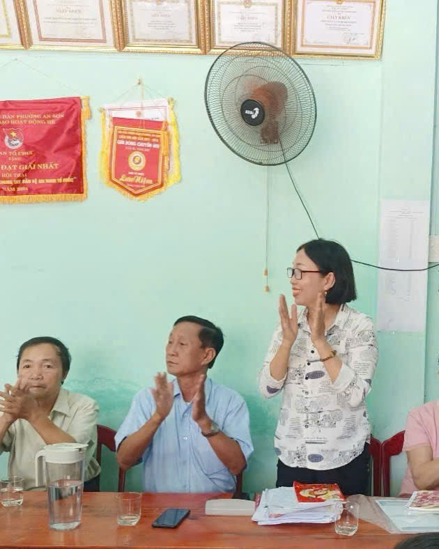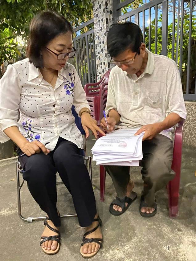 Đồng chí Doãn Thị Sen trực tiếp hướng dẫn người dân điền phiếu điều tra khảo sát, nêu gương tinh thần trách nhiệm với cộng đồng