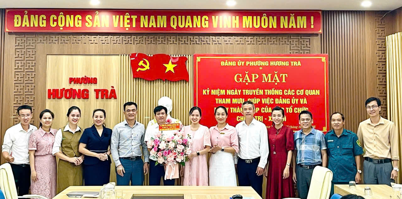 ĐẢNG ỦY PHƯỜNG HƯƠNG TRÀ CHÚC MỪNG KỶ NIỆM NGÀY TRUYỀN THỐNG CÁC CƠ QUAN THAM MƯU, GIÚP VIỆC ĐẢNG ỦY VÀ NGÀNH THÀNH LẬP CỦA CÁC TỔ CHỨC CHÍNH TRỊ - XÃ HỘI
