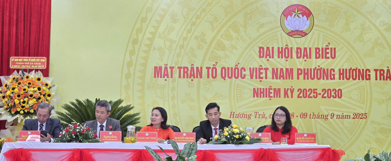 👉Sáng ngày 9/9, Ủy ban Mặt trận Tổ quốc Việt Nam phường Hương Trà long trọng tổ chức Đại hội đại biểu lần thứ I, nhiệm kỳ 2025 – 2030. Bà Nguyễn Thị Thanh Phương, Phó Chủ tịch UBMTTQVN thành phố Đà Nẵng; ông Phạm Hoàng Đức, Bí thư Đảng ủy, Chủ tịch HĐND phường Hương Trà dự Đại hội.