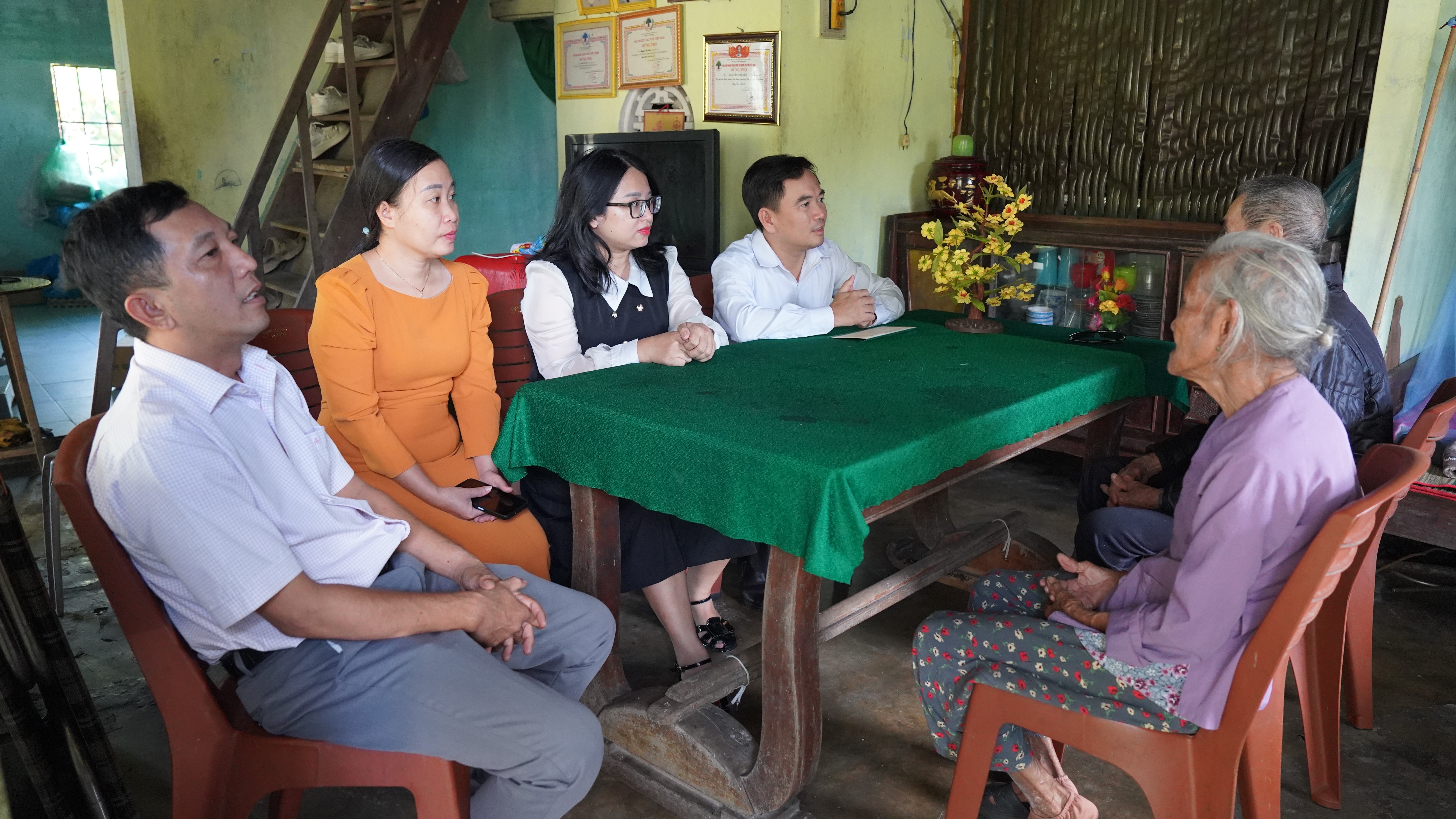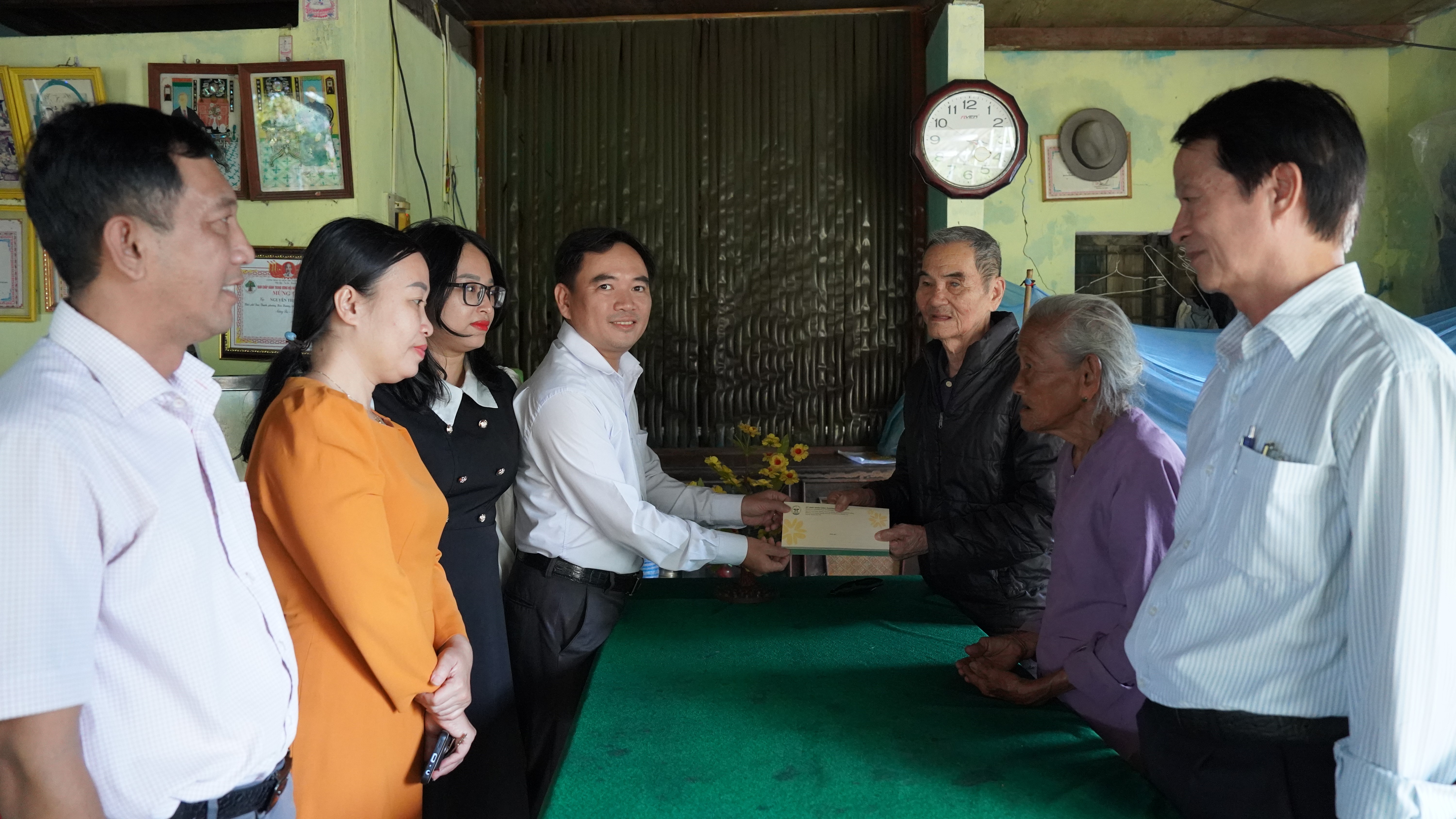 Hộ gia đình được thăm, động viên là ông Trần Hoàn, khối phố Bàn Thạch. Gia đình ông hiện nay có 2 vợ chồng đều đã già yếu, trên 90 tuổi. Tại buổi đến thăm, đại diện lãnh đạo phường đã ân cần thăm hỏi sức khỏe, chia sẻ khó khăn và trao phần quà hỗ trợ, góp phần giúp gia đình sớm ổn định cuộc sống. Đây là hoạt động thể hiện tinh thần tương thân tương ái, kịp thời hỗ trợ các hộ dân bị ảnh hưởng bởi thiên tai trên địa bàn phường.