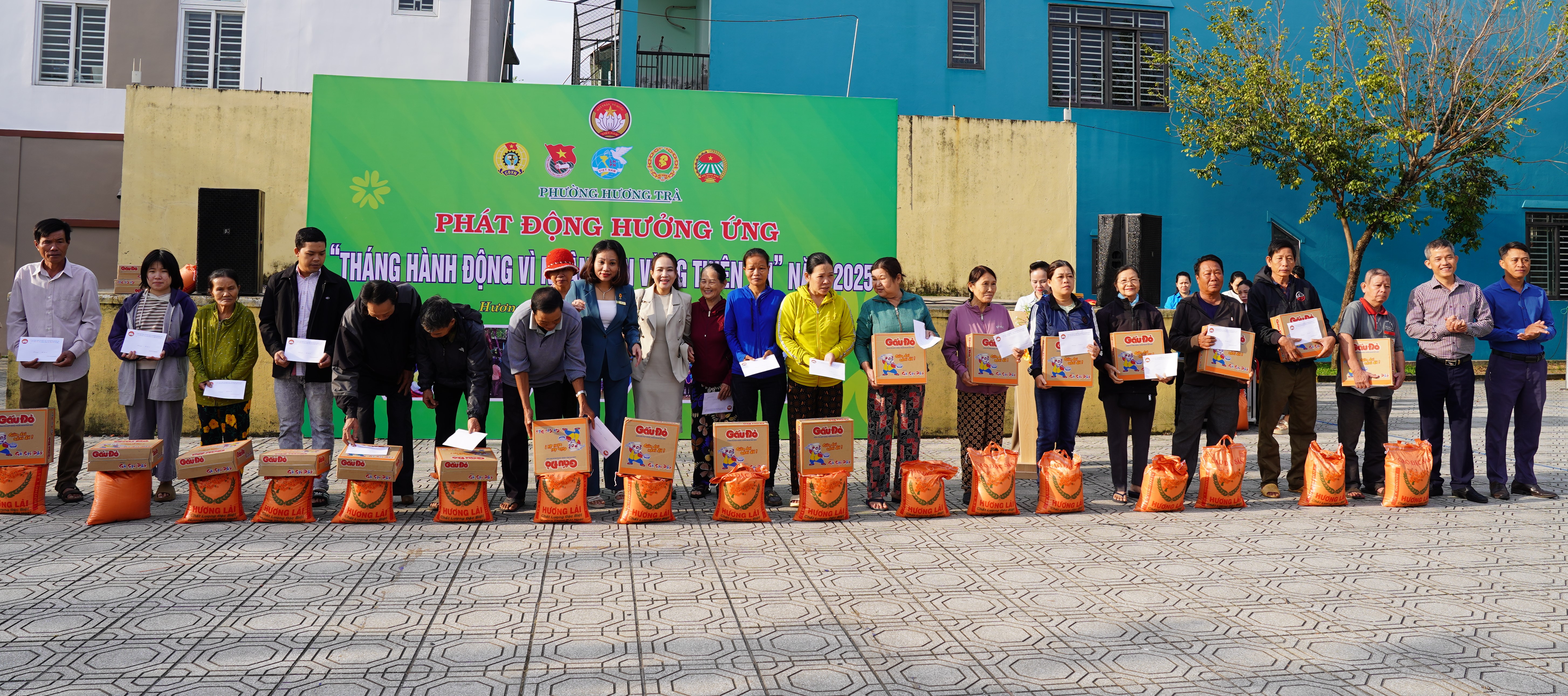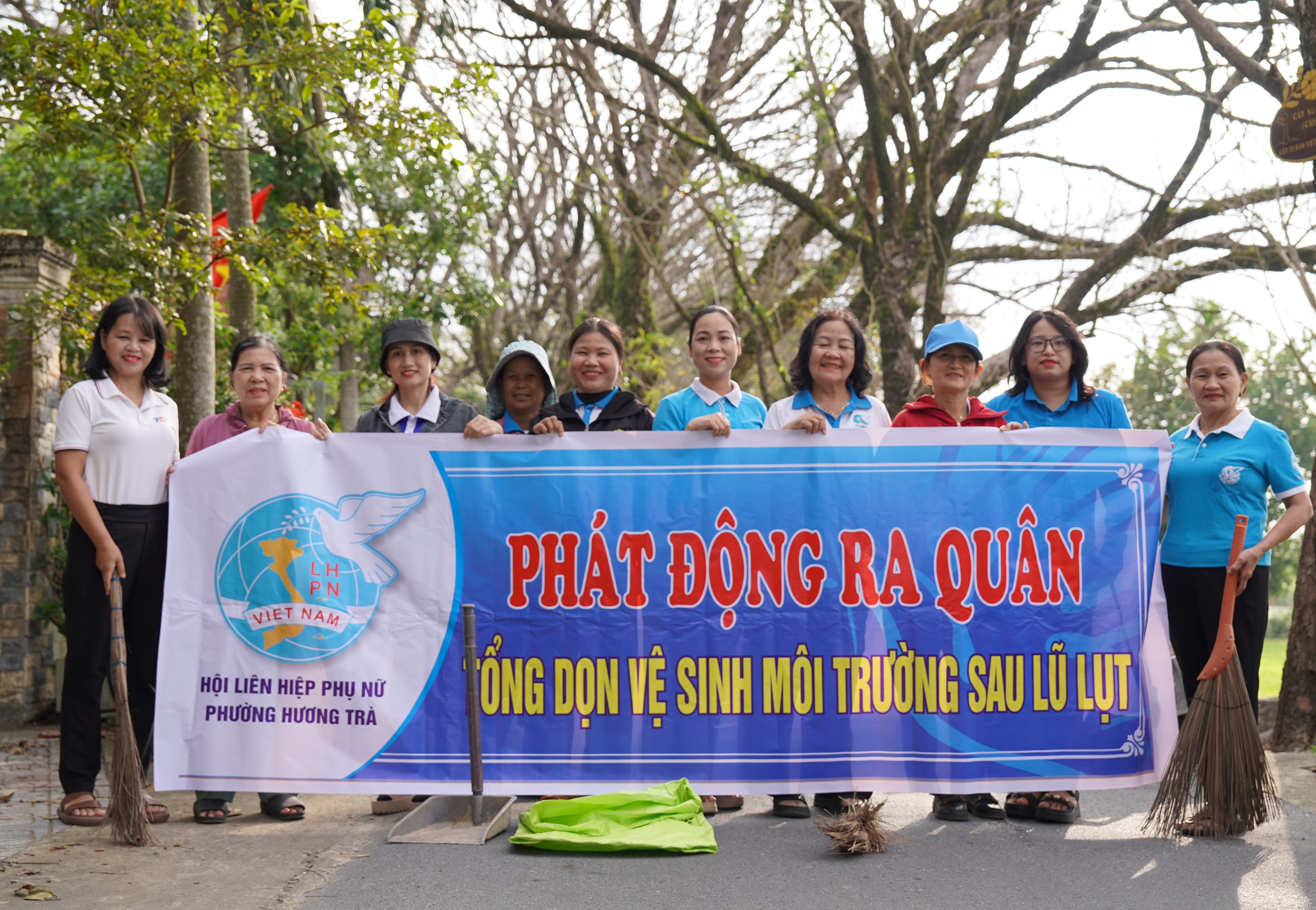 Trong đợt mưa bão vừa qua, Ban công tác Mặt trận ở khu dân cư, đoàn viên, hội viên đã tích cực hỗ trợ nhân dân di dời tài sản, giúp dọn dẹp nhà cửa. Mặt trận phường đã trao 521 suất quà gồm nước uống, rau, củ quả và các nhu yếu phẩm cần thiết cho những hộ dân bị ngập nặng. Tại buổi lễ phát động, Mặt trận phường Hương Trà đã trao thêm 22 suất quà cho các hộ dân có hoàn cảnh khó khăn, chịu ảnh hưởng lớn sau thiên tai. Bên cạnh đó, Mặt trận phường phát động toàn thể bà con Nhân dân ở 20 khu dân cư đồng loạt ra quân tổng dọn vệ sinh môi trường, khơi thông cống rãnh, thu gom rác thải, làm sạch đường phố, ngõ xóm sau mưa lũ. Đồng thời, thành lập 2 tổ tổng dọn vệ sinh môi trường gồm lực lượng đoàn viên, hội viên của Đoàn Thanh niên, Hội Liên hiệp Phụ nữ, Hội Cựu chiến binh và Hội Nông dân trực tiếp tham gia dọn dẹp, vệ sinh trên hai tuyến đường công cộng trên địa bàn phường.